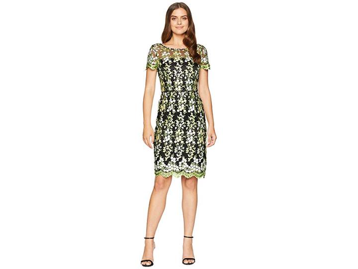 Tahari By AslTahari By Asl Embroidered Mesh Short Sleeve Sheath Dress (black/lemon/green) Women's Dress