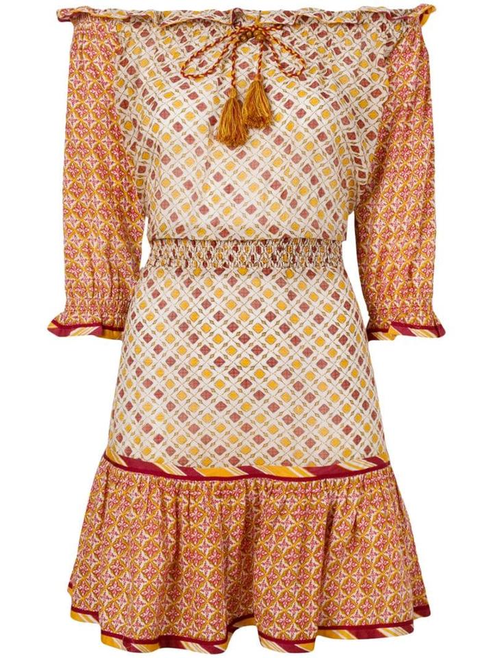 - Talitha - Zigzag Print Off-shoulder Tunic Dress - Women - Silk/cotton - Xs, Blue, Silk/cotton