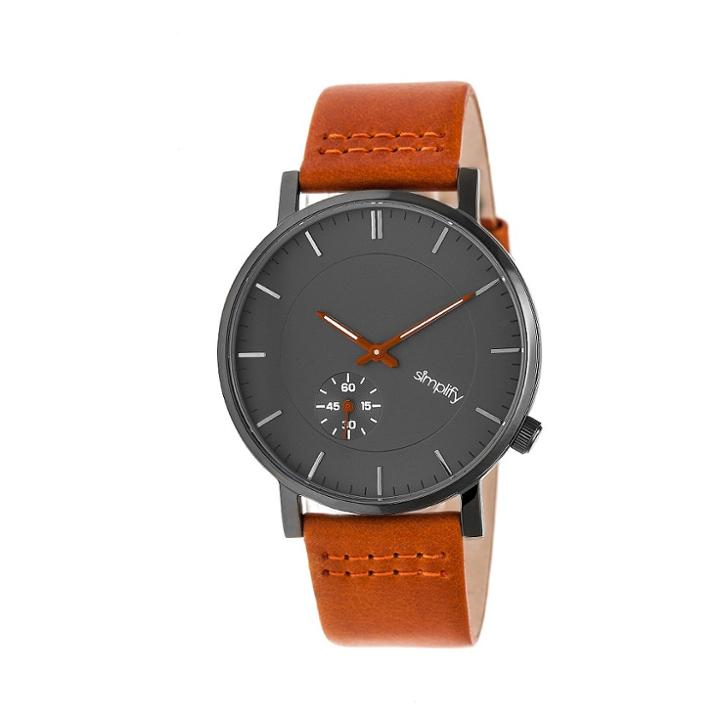 TargetTarget Simplify The 3600 Men's Leather-band Watch - Gunmetal/silver/orange