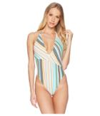 Enjoy the tropical feel of The Bikini Lab Pineapple One-Piece. ; One-piece swimsuit in an eye-catching pattern-block print. ; V-neckline. ; Free of cups and padding. ; Torso cutout gives an extra peek of skin. ; Fixed hook closure. ; High-cut thighs with moderate rear coverage. ; 83% nylon, 17% elastane. Lining: 100% polyester. ; Hand wash cold, line dry. ; Imported. Measurements: ; One Piece Length: 29 in ; Product measurements were taken using size SM. Please note that measurements may vary by size. ; If you're not fully satisfied with your purchase, you are welcome to return any unworn and unwashed items with tags intact and original packaging included.