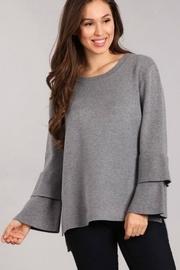 Solid long sleeve long body top, in a relaxed fit with a round neckline, slits, and tiered bell sleeves.