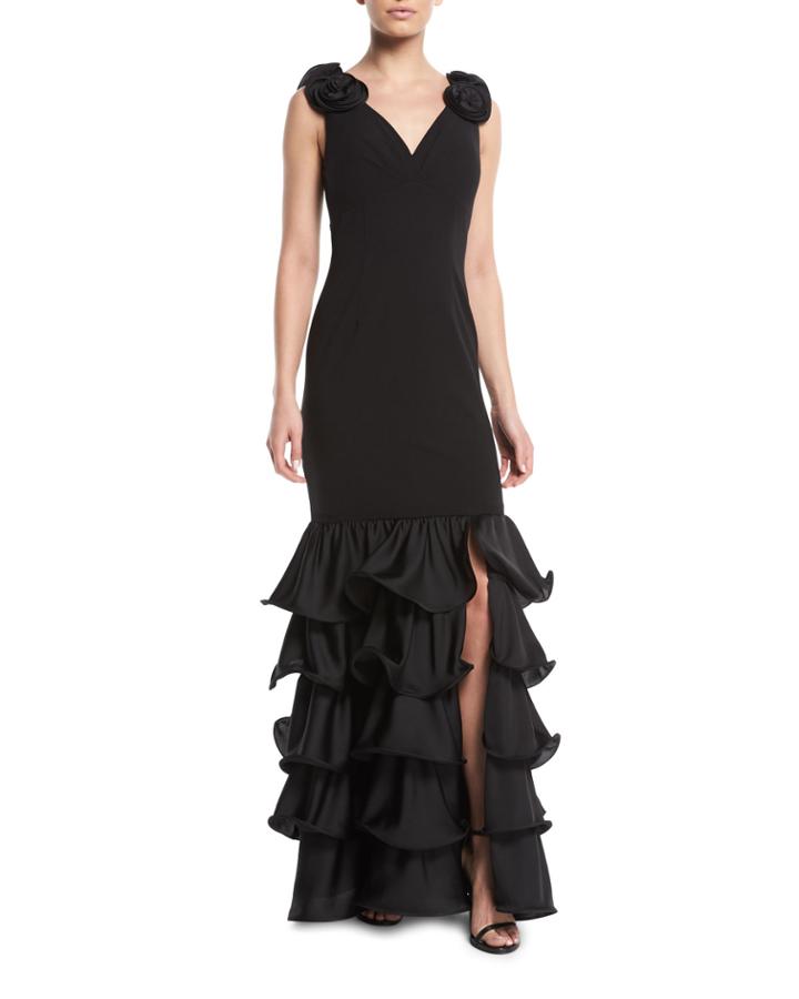 Aidan MattoxTiered Ruffle Gown W/ 3d Rosette