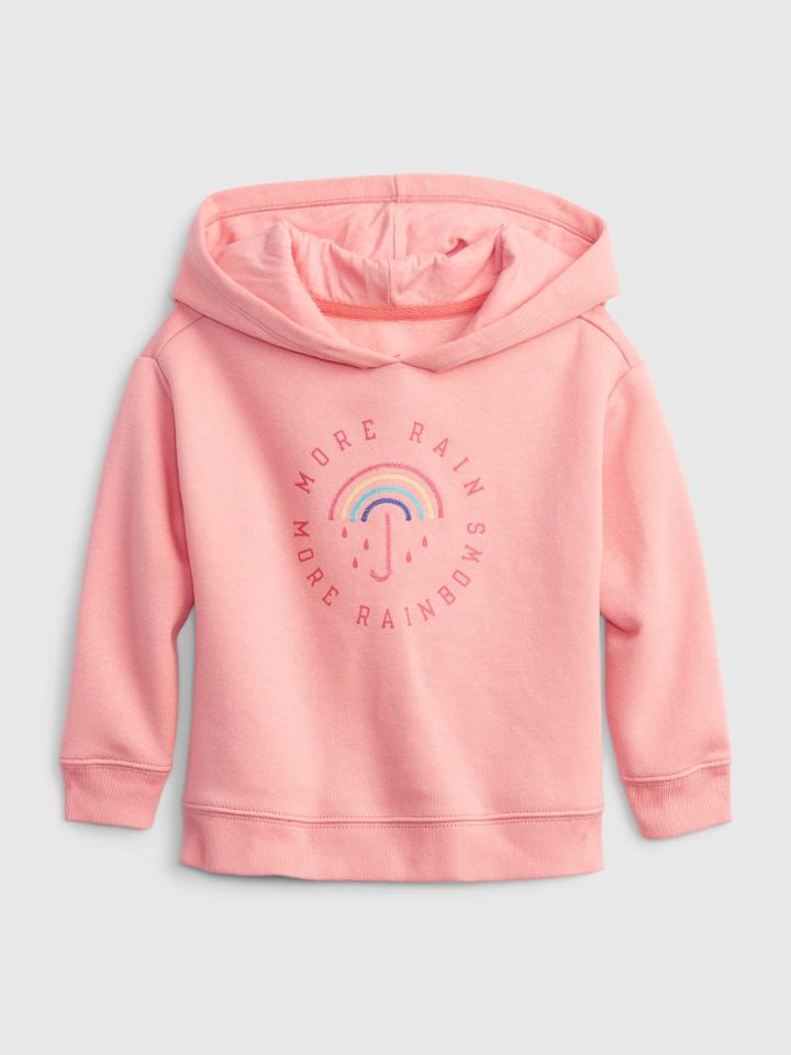 This hoodie is made with 9% recycled polyester. Less waste in the world. More great clothes for you. Soft fleece knit. Hooded neckline. Long sleeves. Graphic at front. Straight, easy fit. Hits at the hip.