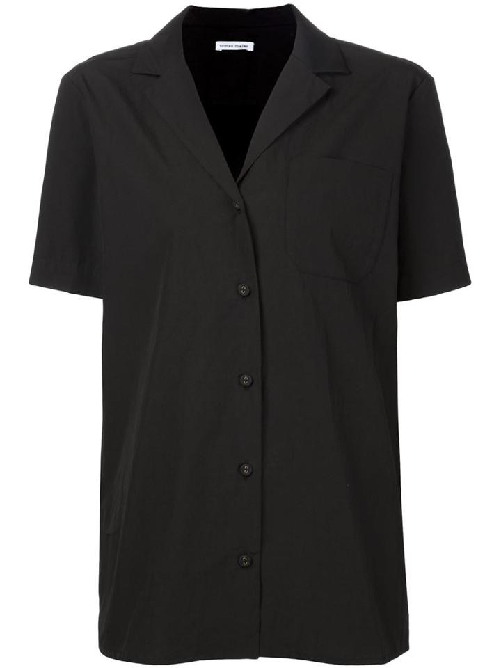 Black cotton boxy short sleeve shirt from Tomas Maier.