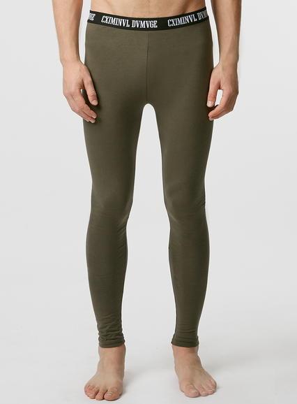 Basic khaki meggings by Criminal Damage featuring a branded elasticated waistband. Model is 6 foot 1 and wears a medium65% Polyester, 35% CottonMachine washable