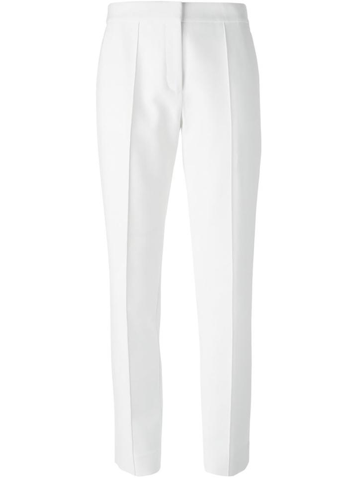 White stretch cotton straight leg trousers from Tory Burch. Size: 4. Color: White. Gender: Female. Material: Cotton/Polyester/Spandex/Elastane/Viscose.