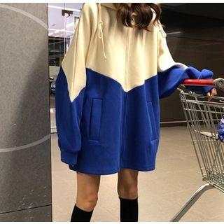 SmilerTwo-tone Zip Hoodie Beige & Blue - One Size