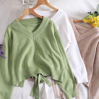 PinatraV-neck Tie-back Long-sleeve Cropped Sweater