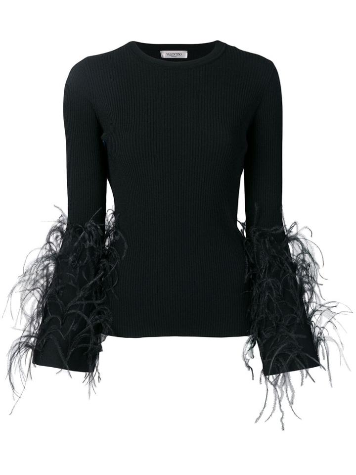 ValentinoValentino Ostrich Feather Embellished Jumper - Black