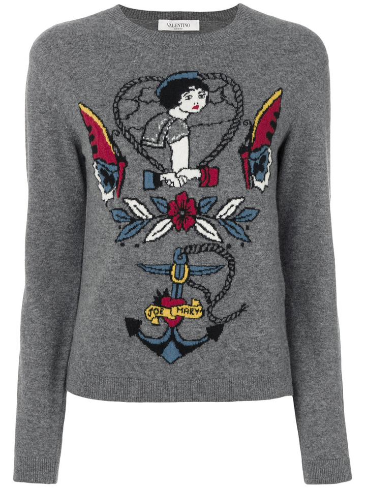 - Valentino - Tattoo Intarsia Jumper - Women - Virgin Wool/cashmere/cotton - Xs, Grey, Virgin Wool/cashmere/cotton