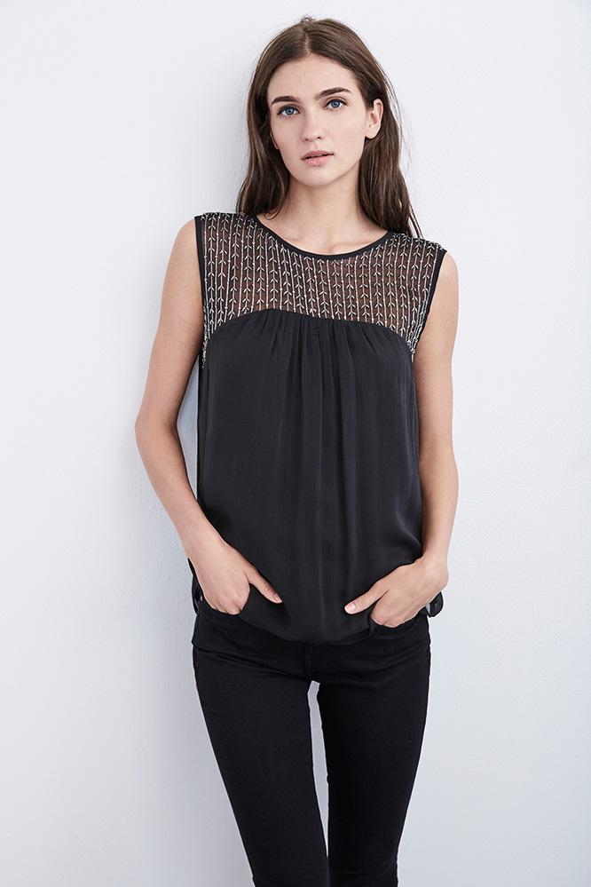 Velvet ClothingVelvet Clothing Elora Beaded Chiffon Sleevlees Top-black-beadvchif