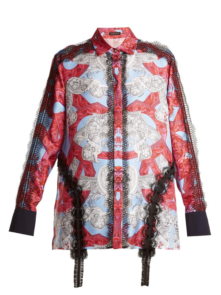 VersaceVersace Lace-trimmed Baroque-print Silk Shirt