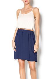 Thin strap dress navy bottom and cream top with unlined with an elastic waistband and belt (belt included)