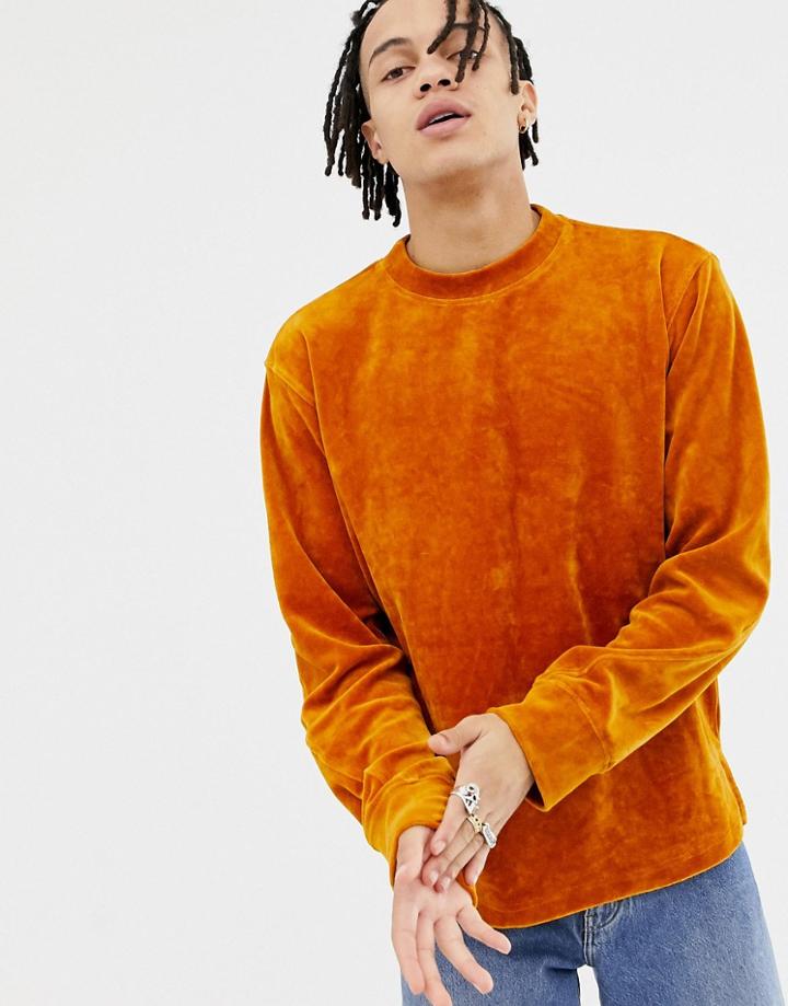 WeekdayWeekday Score Velvet Sweatshirt In Orange - Yellow
