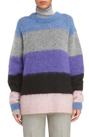 Wide, bold blocks of color update a fabulously oversized mohair-blend sweater framed in classic ribbed trim. Style Name: Acne Studios Albah Multistripe Oversize Sweater. Style Number: 5399675. Available in stores.