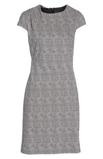 A jacquard knit lends eye-catching texture to a sophisticated sheath dress with cap sleeves and elegant draped detailing at the neck. Style Name: Adrianna Papell Jacquard Sheath Dress. Style Number: 5513011. Available in stores.