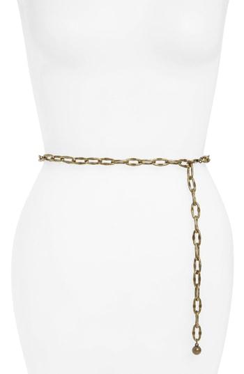 Hammered brass chain links form a slender, stylish belt perfect for adding a touch of metallic gleam to your favorite LBD. Style Name: Lovestrength Chain Belt. Style Number: 5651025. Available in stores.