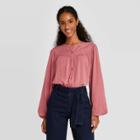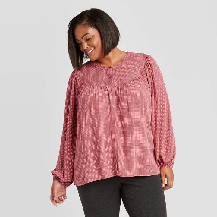 A New DayWomen's Plus Size Polka Dot Long Sleeve Button-front Blouse - A New Day Pink