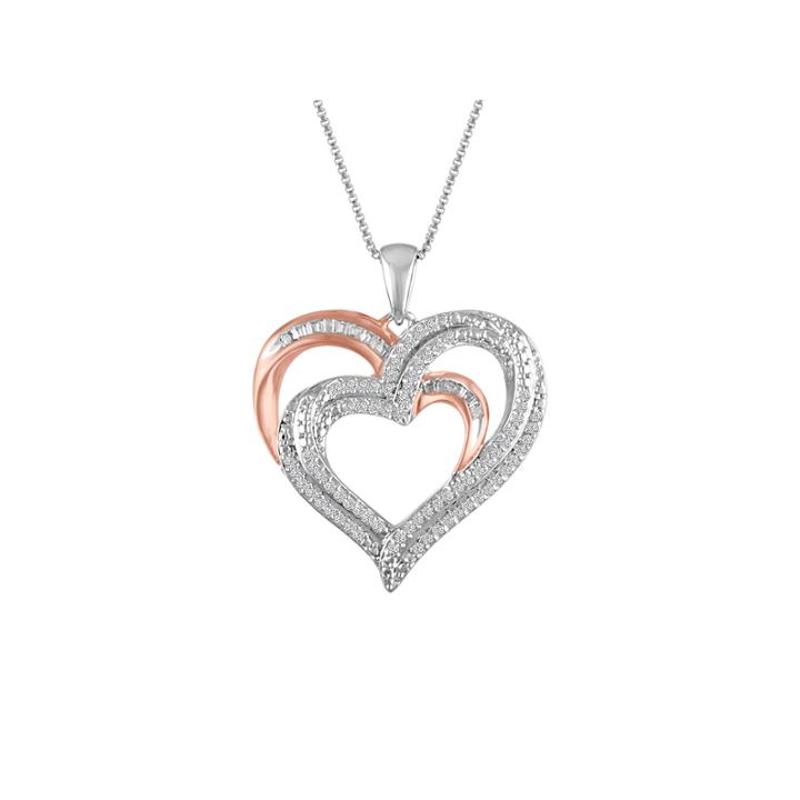 - Womens 1/10 Ct. T.w. Genuine White Diamond 14k Rose Gold Over Silver Sterling Silver Heart Pendant Necklace