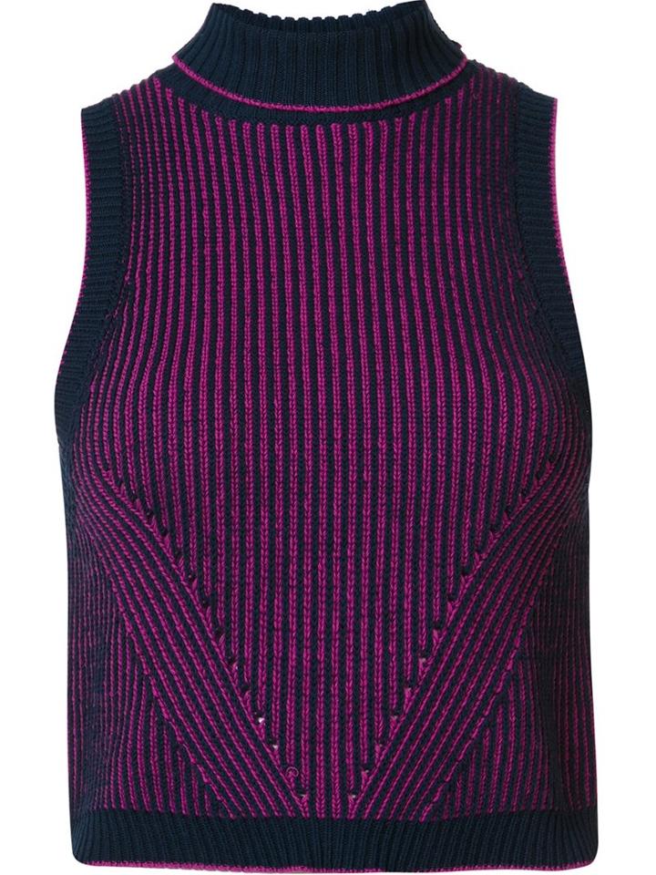 Navy blue and fuchsia stretch cotton 'Liv' turtle crop top from ZAC Zac Posen. Size: L. Gender: Female.